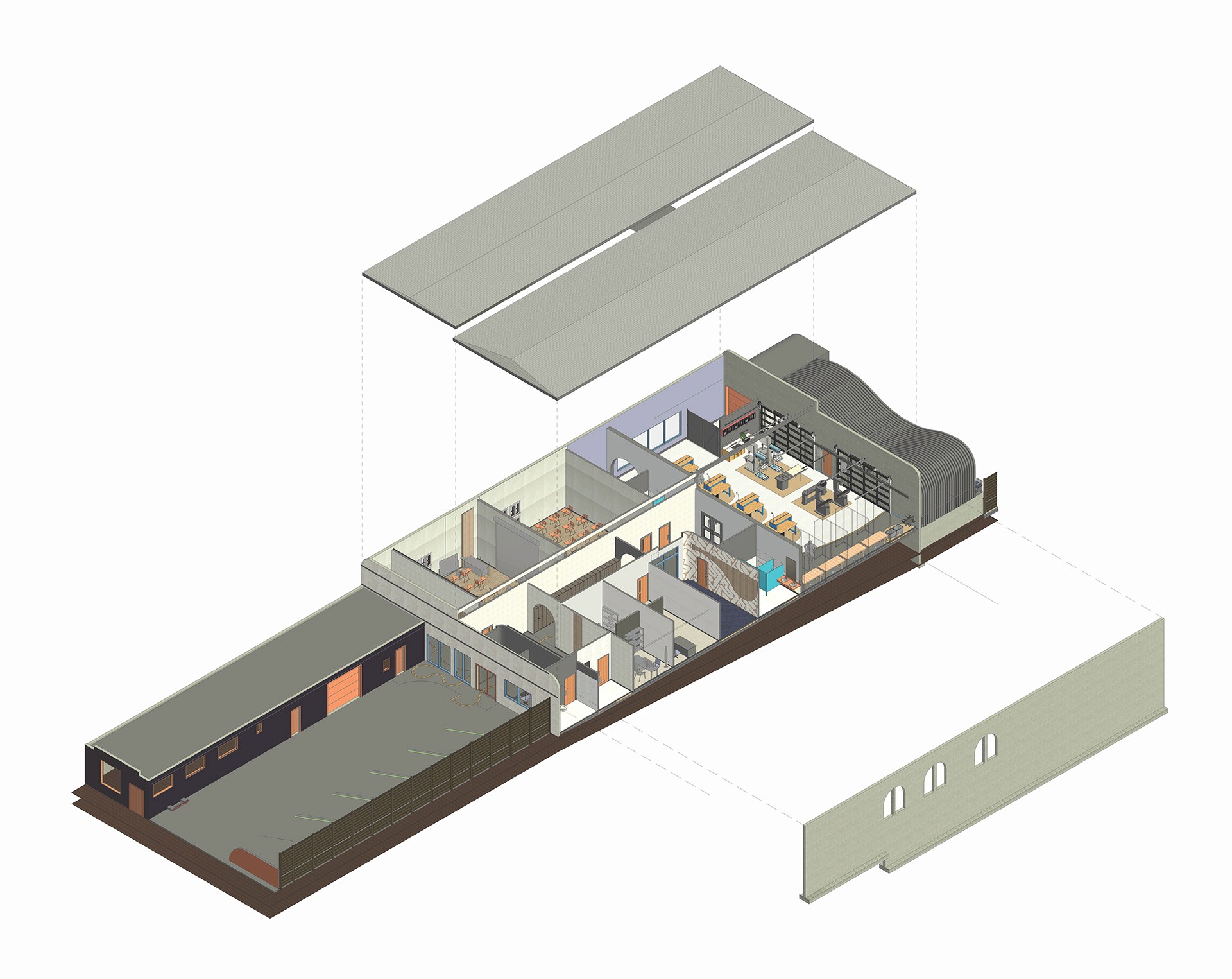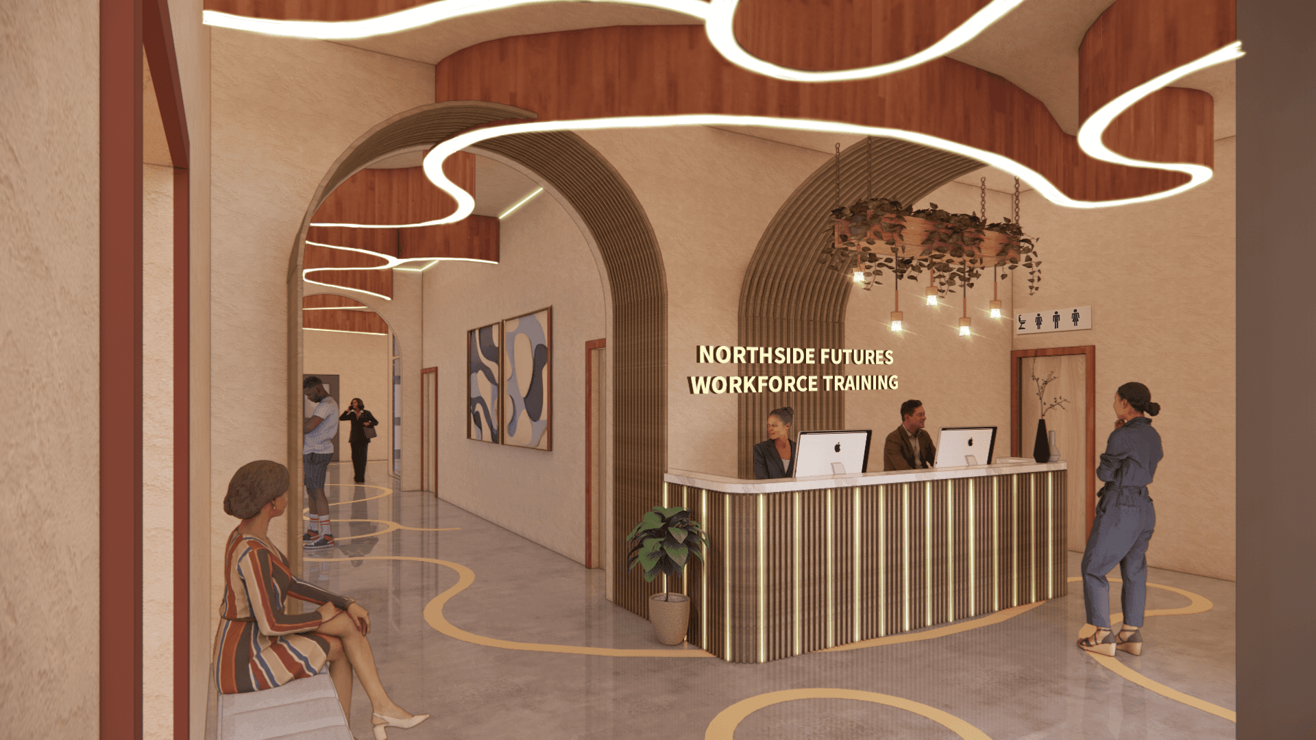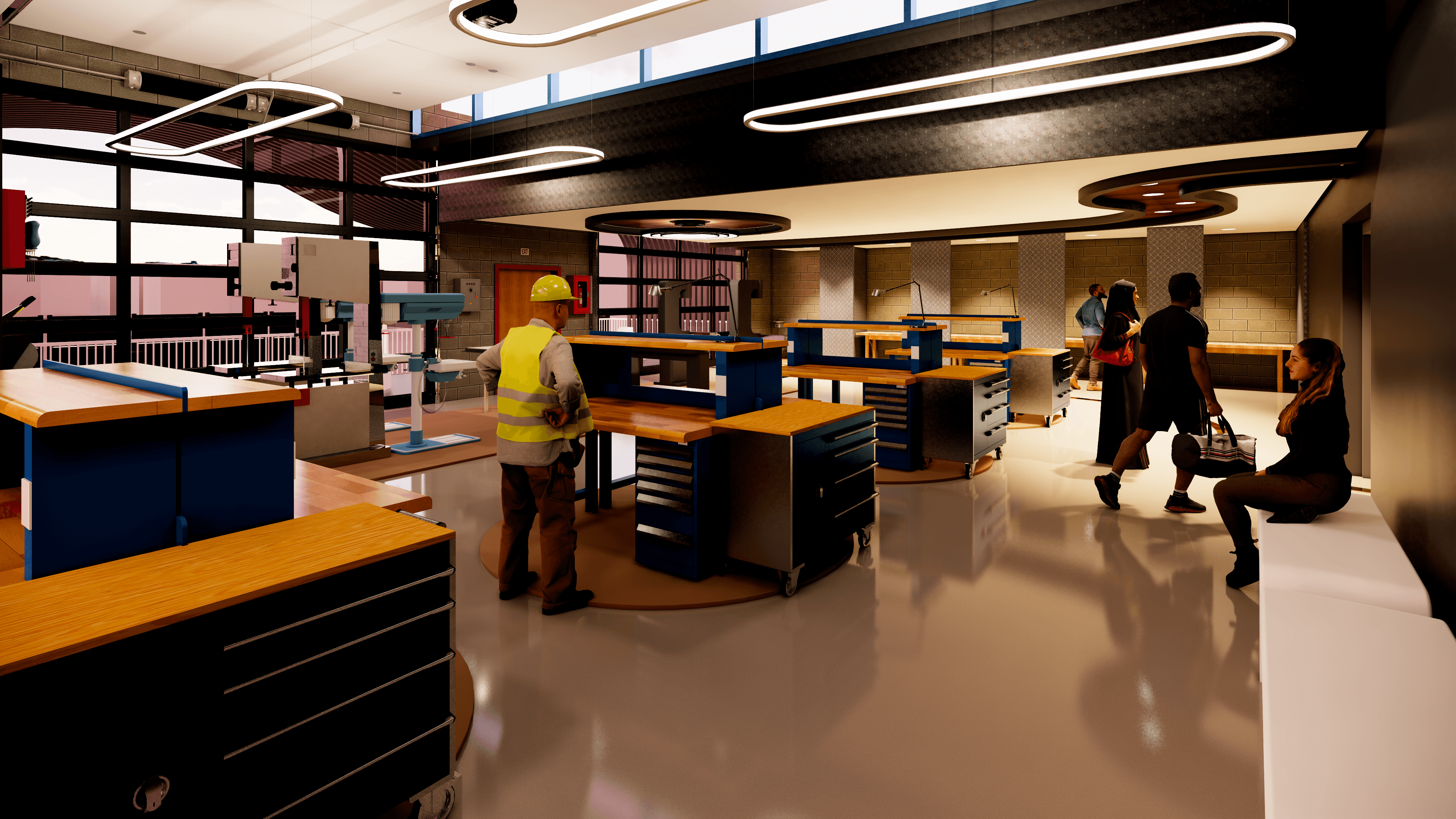 Open-concept layout with soaring ceilings